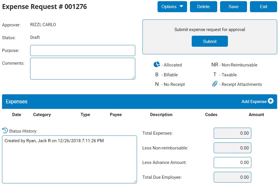 ExponentHR allows you to submit Expense Requests when seeking reimbursement for business expenses.