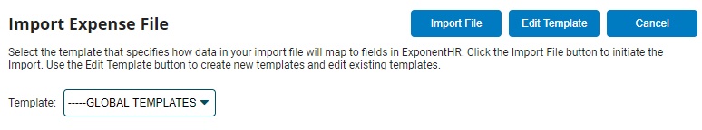 2. Select the appropriate template from the available options in the TemplateTemplate drop-down box that matches the expense import file that you are wanting to import.