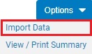 1. Within an Expense Request, click the Options button > Import DataOptions button > Import Data.