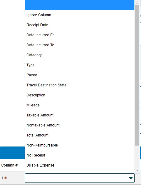 7. If the column has associated codes that can be differentiated based on the text on the expense import statement, you may choose to map the codes to assist with the population of the expense request.