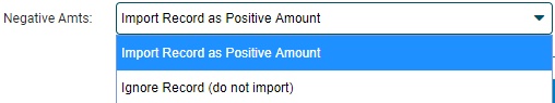 5. Choose if Negative AmtsNegative Amts present on the expense statement should be imported as a positive (+) amount or ignored (not imported. Default is for any negative amounts to be imported as positive amounts in the expense reimbursement request.
