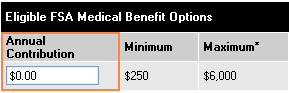 7. Enter the total amount to save into your FSA plan for the plan year in the Annual ContributionAnnual Contribution box.