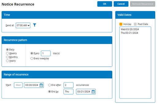 Setting Up a Recurring NoticeSetting Up a Recurring Notice