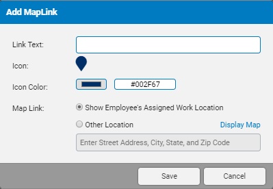 Helpful Tip: If the new hire is set up with the "work at home" location, the employee's home address will be displayed by default. If desired for such instances, use the Display Conditions to either hide this specific element or to use an alternate Map Link destination instead.