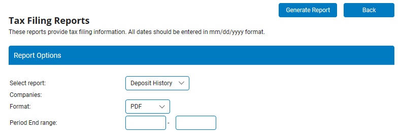 3. Select Deposit History from the Select report drop-down list (if not already selected)