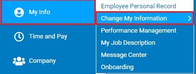 1. On the menu, click My Info > Change My InformationMy Info > Change My Information.