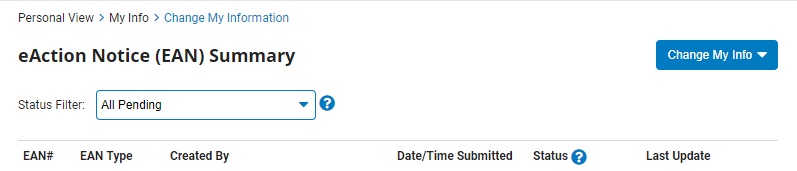 You can review the status of any EAN on the EAN Summary page. Changes will not appear in your employee record until the EAN status is Completed.