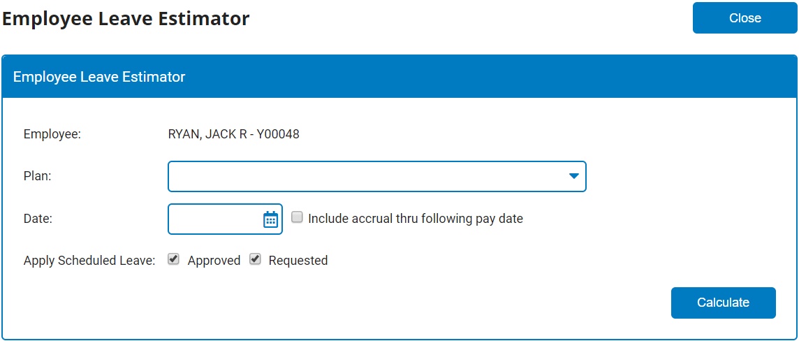 The Employee Leave EstimatorEmployee Leave Estimator page displays.